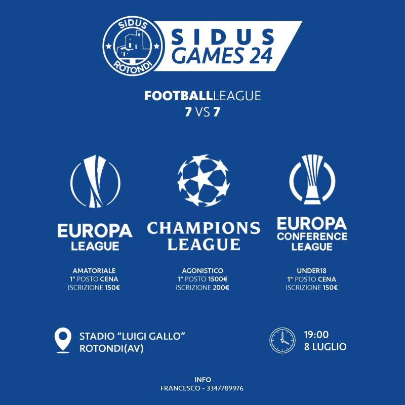 In occasione dell’inaugurazione della Sidus Cup ‘24, domenica 07/07/2024 alle ore 19:00 si terrà una partita sociale di calcio a 11 dedicata agli Over 40 ed un quadrangolare dedicato alla categoria “Giovanissimi”.