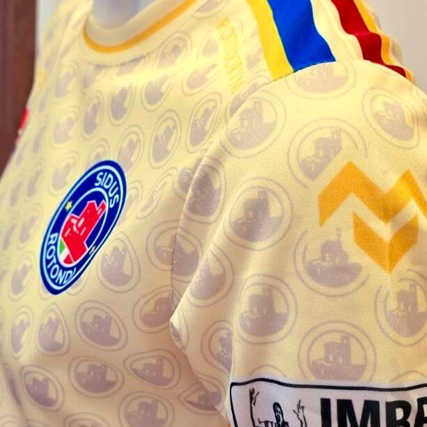 La maglia è ispirata al concetto di “ORIGINI”. Il colore principale della nuova t-shirt è il tradizionale avorio, simbolo di tradizione, eleganza e continuità nel tempo; le linee dorate richiamano la nostra fervente energia; le sfumature rossoblu l’identità del club. Sulla parte anteriore della t-shirt la scritta “CASTRUM ROTONDORUM” che richiama il castello della famiglia feudataria De Rotundis (1400); sulla parte posteriore del colletto l’anno di riferimento del borgo medievale. Il nostro simbolo si ripete sul tessuto più volte per enfatizzare il concetto di appartenenza e storia. Grazie a @cmax.italy abbiamo realizzato una t-shirt da gioco iconica, con materiali estremamente traspiranti e anti-sudore realizzata con nuove tecnologie che consentirà agli atleti il massimo del comfort.